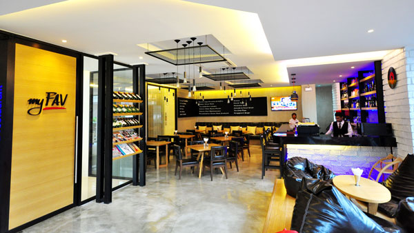 - myFAV café & restaurant serves a variety of international and locally flavored dishes with "a la carte" selection. Named after the owner's favorite food finds around the world. The menu is a collection of fond memories from these great finds. American breakfast set is served between 6:30 -10:30 a.m. Open daily for breakfast, lunch and dinner. Opening hours are from 6:30 a.m. -10:30 p.m. Located at Lobby level.